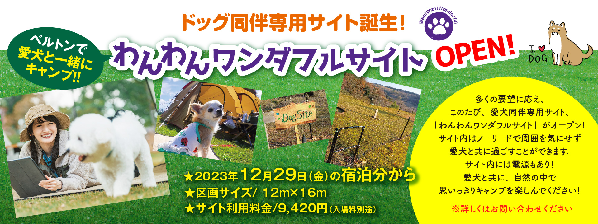 ※ドッグランサイトは、周囲を柵で囲っており、サイト内ではリード等でのペットの管理は必要ありません。